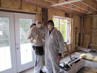 we have had to insulate between granny's rooms and the upstairs to make sure no noise gets through. The renters in Salmon Arm have been complaining about the late night revelry and loud and raucous partying that has been occuring from the suite! Paul, Tara, Wade, and I have worked some very long hours including the weekend trying to get ready for the drywallers.